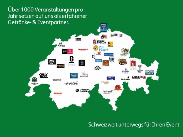 Gerne unterstützen wir Sie mit unserer langjährigen Erfahrung bei der Durchführung Ihres Anlasses. Wir begleiten Sie von der Beratung über die Lieferung bis hin zum perfekten Auftritt vor Ort. Mit einem breiten Getränkesortiment, hochwertigem Eventmaterial und einer schweizweit tätigen Logistik sind wir der ideale Partner für Ihren Event.