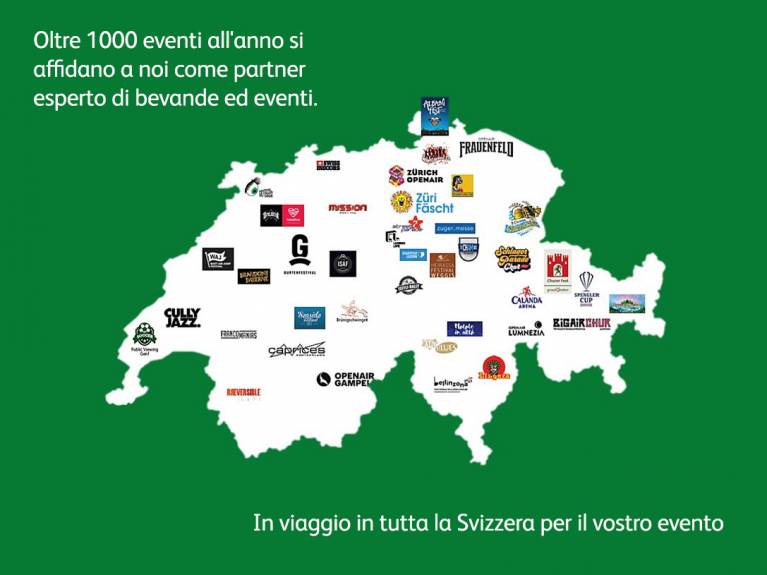 Siamo lieti di supportarvi con la nostra pluriennale esperienza nell'organizzazione del vostro evento. Vi accompagniamo dalla consultazione iniziale fino alla consegna e all'aspetto perfetto in loco. Con un'ampia gamma di bevande, attrezzature per eventi di alta qualità e una logistica che opera in tutta la Svizzera, siamo il partner ideale per il vostro evento.